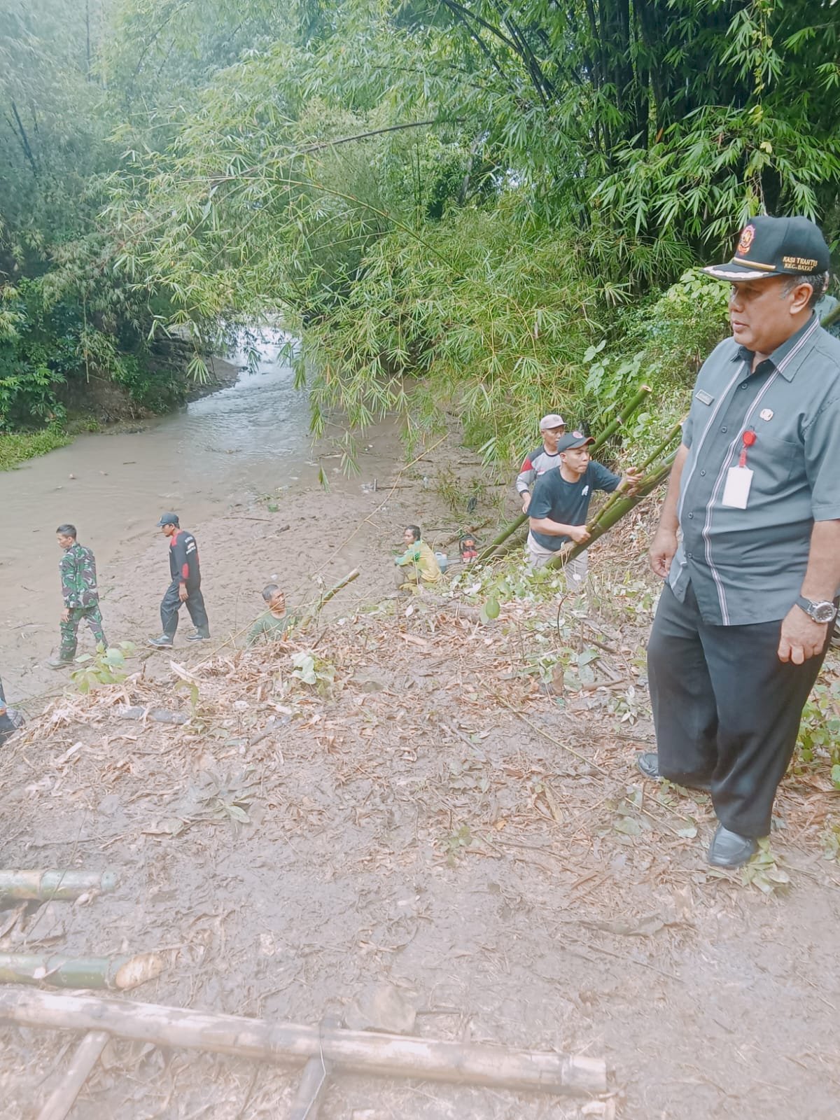Pemerintah Kecamatan Bayat melaksanakan kegiatan monitoring eksekusi rumpun bambu longsor yang terjadi akibat hujan deras disertai angin puting beliung di Dukuh Kaliture, Desa Nengahan, Kecamatan Bayat, pada Kamis, 25 Januari 2026.