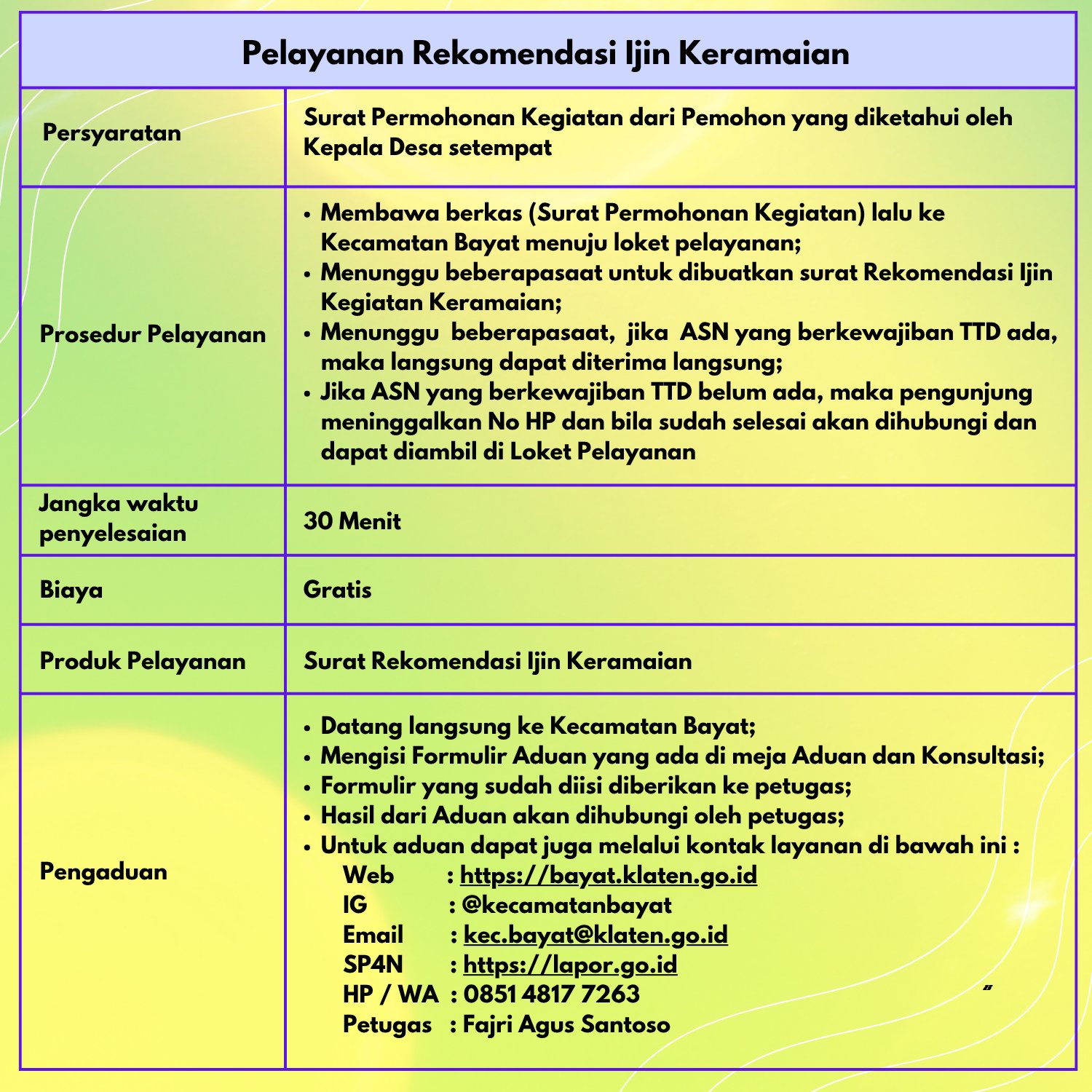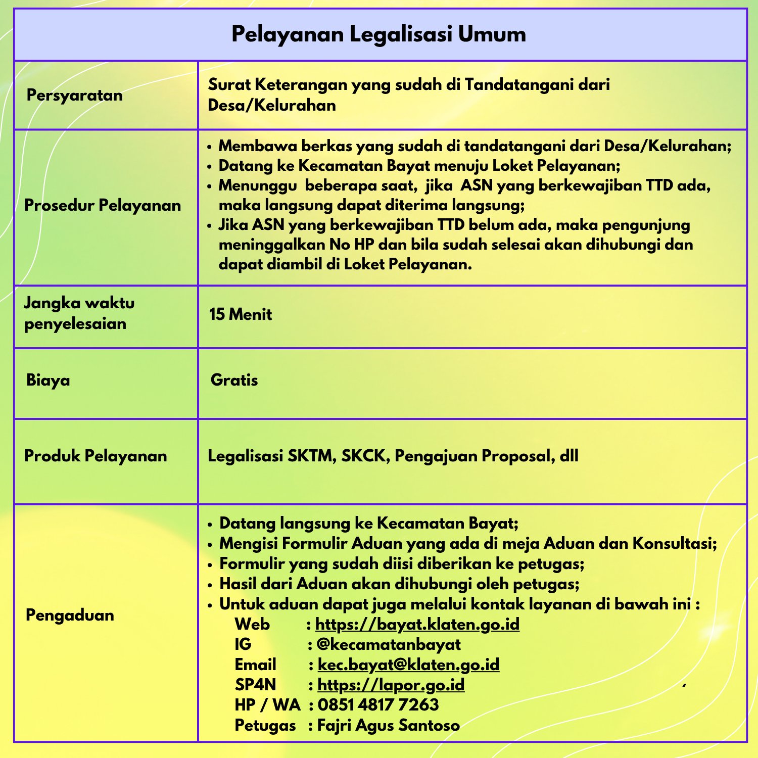 Bagaimana tingkat pelayanan di kecamatan bayat?